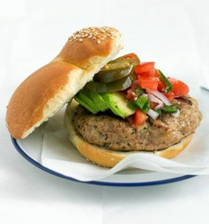 - Place the burgers inside the buns and top with a slice of Monterey Jack and a spoonful of spicy mayo and caramelized onions. Serve straight away.