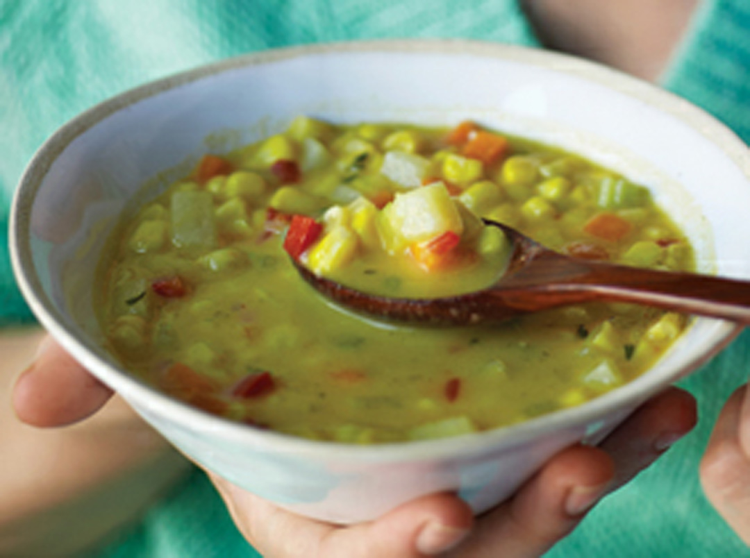 I should have called this recipe “It’s Time for Thyme in Corn Chowder!” That herb, along with the parsley, is really delicious in this creamy blend. Oh, I could break into song. I don’t have the sage and rosemary, but you get the drift. Since corn is difficult to digest, I rarely eat it. When I do, it’s in this soup. I go out of my way to source non-GMO corn, and combine it with alkaline components to balance the high sugar content and acidity. This is pure comfort food.