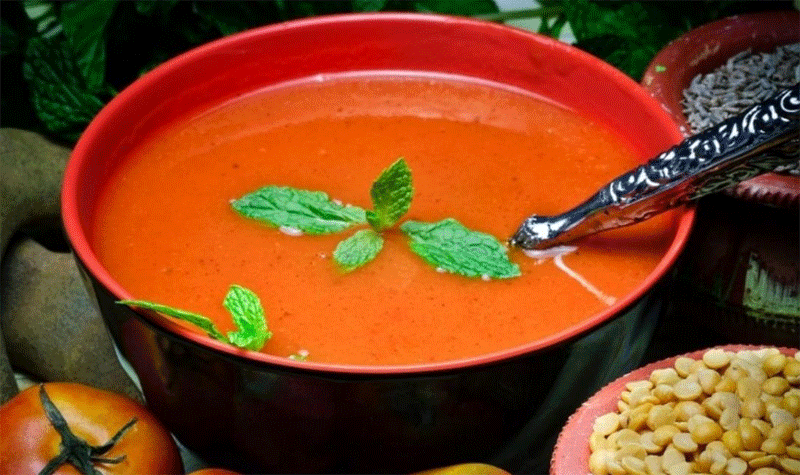 Tomato and mint puree soup with butter!