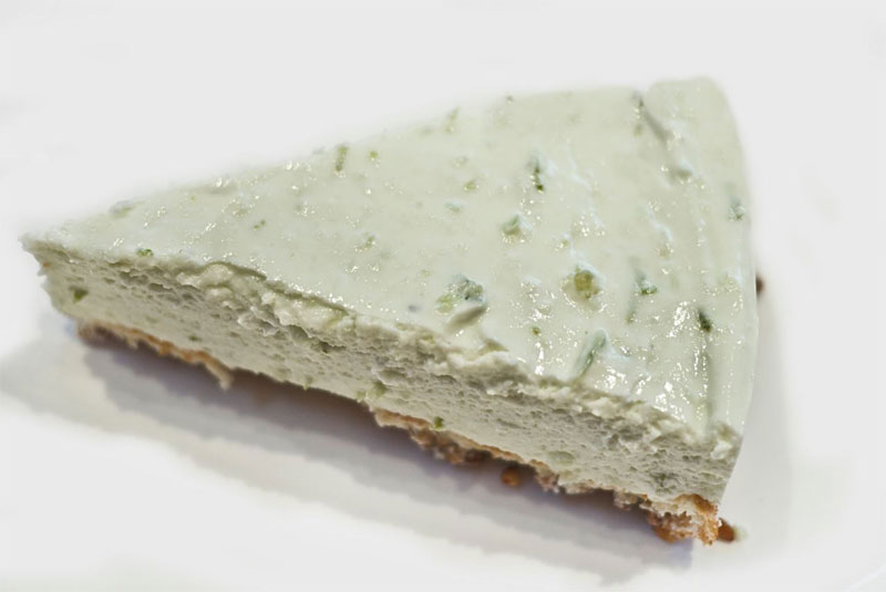 A light crust topped with a velvety, vanilla and lime inspired sweet, tofu filling.