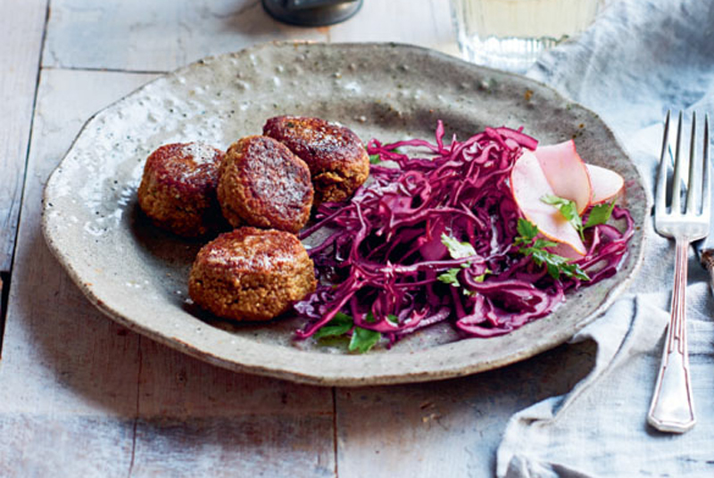 - Place the onion, carrot, celeriac and nuts in a food processor and pulse until chopped. Add the rest of the ingredients (apart from the oil and butter) and pulse again until you have a mixture that can be easily shaped into round balls (a bit larger than a walnut). You should be able to make about 30 veggie balls from the mixture.