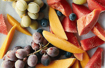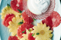 Best to try this one at a weekend or on a day when you’re around in the kitchen so you can keep checking on its progress in the freezer and breaking up the crystals – kids love to help with this. These three fruits make a magic combination and this is a stunning low-calorie pudding.