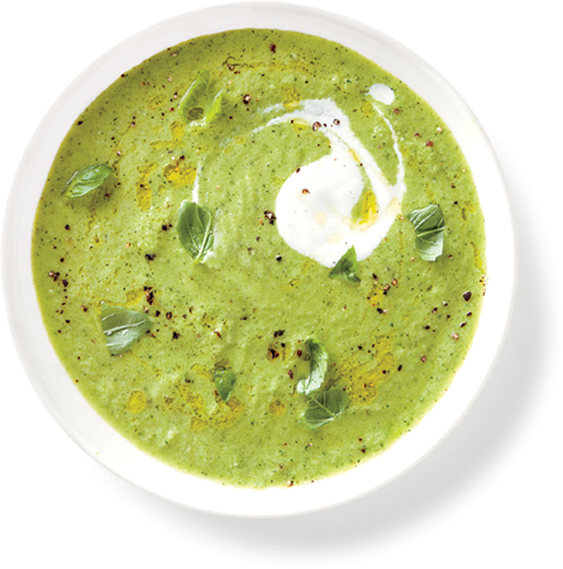 - Puree the scallions, cucumbers, zucchini, oil, basil, and lemon juice in a blender until smooth. Add the yogurt and 1 teaspoon each salt and pepper and pulse to combine.
