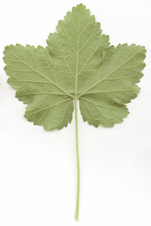 The leaves are alternate, single, lobed and maple-like with 3 to 5 coarsely toothed lobes; the terminal lobe is longer than the side lobes. Black currant leaves are pale green, while those of the redcurrant are deep blue-green. Both are easily burned by strong sunlight. Leaf size and number is decreased under water stress.