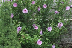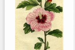 Hibiscus syriacus has been grown as a garden shrub in Korea since ancient time. Its leaves were brewed into an herbal tea and its flowers eaten. Later on it was introduced and grown in the gardens of Europe as early as the 16th century, though as late as 1629 John Parkinson thought it was tender and took great precautions with it, thinking it “would not suffer to be uncovered in the Winter time, or yet abroad in the Garden, but kept in a large pot or tubbe in the house or in a warme cellar, if you would have them to thrive.” By the end of the 17th century, some knew it to be hardy: Gibson, describing Lord Arlington’s London house noted six large earthen pots coddling the “tree hollyhock”, as he called it, “that grows well enough in the ground”. By the 18th century the shrub was common in English gardens and in the North American colonies, known as Althea frutex and “Syrian ketmia”.