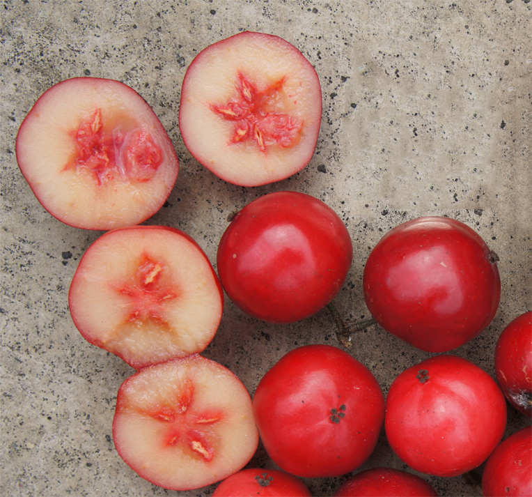 Shapes Fruit is somewhat rounded, 2 to 2.5 centimeters in diameter, fleshy, sub-acid and pleasing in flavor