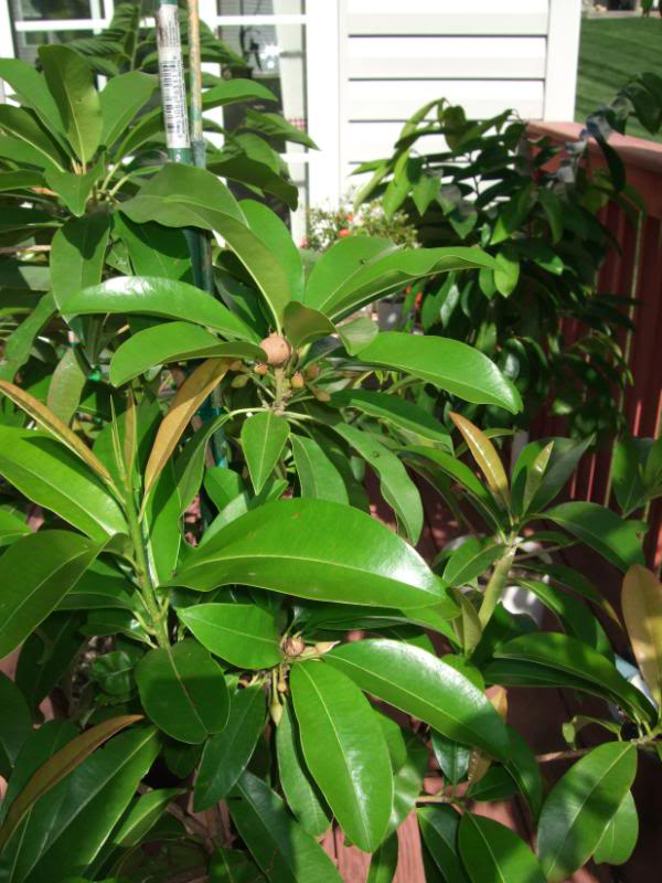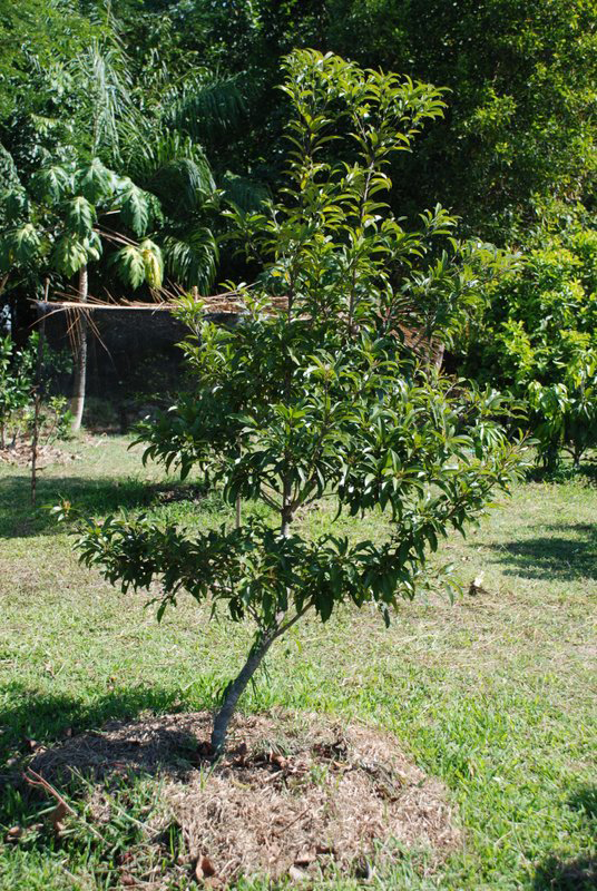 The Sapodilla is an evergreen, long-lived, erect and lactiferous tree which reaches upto 100 ft. high with an alternately arranged leaves. The leaves are oblong-lanceolate to ovate-elliptic, medium green, glossy, 3 to 4-1/2 inches in length and 1 to 1-1/2 inches in width. The flowers are small, white and bell-shaped with the diameter 3/8 inch (9.5 mm). The tree yields the flowers throughout the year. Each branchlet is arranged horizontally or drooping. The rough dark brown bark possesses a white and gummy sap. Sapodilla grows on subtropical and tropical climates. It prefers well-drained and light soils.