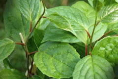 | Leaf | Leaf blade elliptic to obovate, 4.5-8(-10.5) × 2.5-6.5 cm, thinly papery to papery, not glaucous, venation glabrous or rarely adaxially sparsely pubescent, |