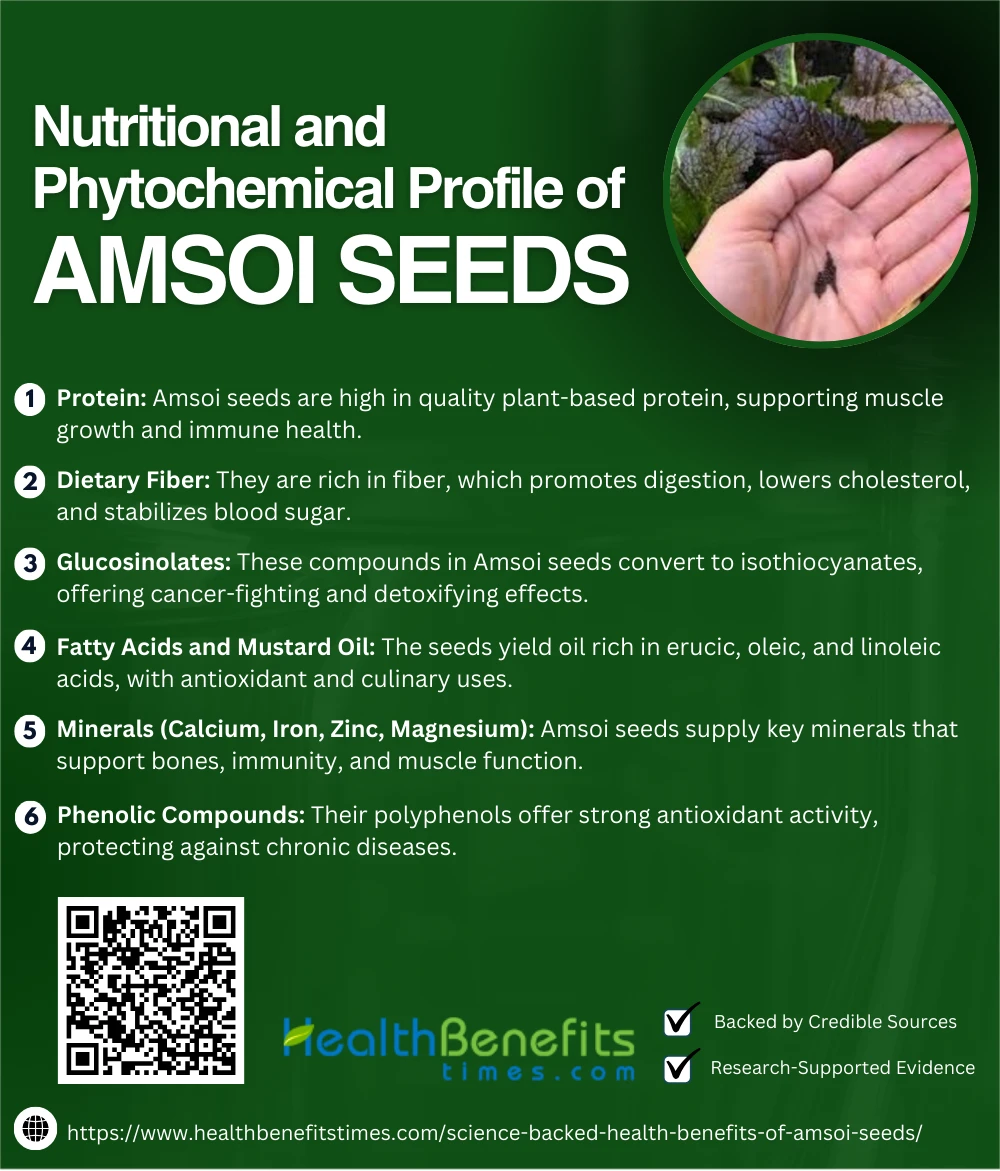 Amsoi seeds offer a range of science-backed health benefits due to their rich antioxidant, anti-inflammatory, and nutrient content. Research highlights their potential in supporting heart, digestive, and immune health.