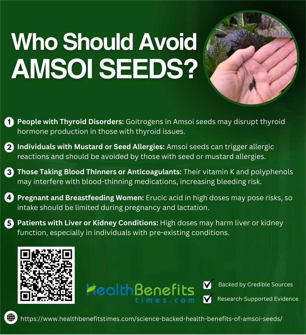 While Amsoi seeds offer many health benefits, they may not be suitable for everyone. Individuals with seed allergies, certain medical conditions, or those on medication should consult a healthcare professional.