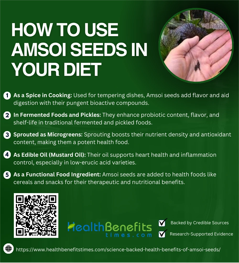 Incorporating Amsoi seeds into your daily diet is easy and beneficial. These versatile seeds can be added to smoothies, baked goods, salads, or consumed as roasted snacks or powdered supplements.