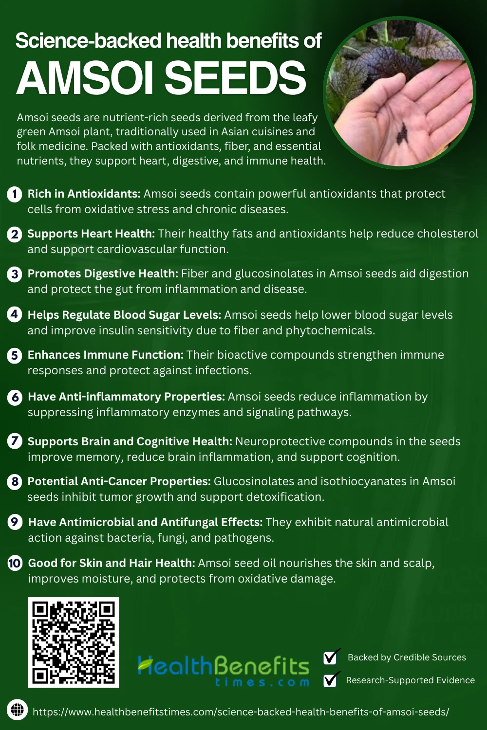 Amsoi seeds offer a range of science-backed health benefits due to their rich antioxidant, anti-inflammatory, and nutrient content. Research highlights their potential in supporting heart, digestive, and immune health.