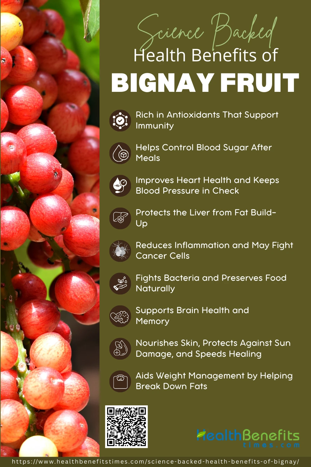 Antidesma bunius (bignay) emerges as a nutrient-dense superfruit, boasting high levels of antioxidants (anthocyanins, polyphenols, vitamin C) and dietary fiber that collectively support immune function, glycemic balance, cardiovascular health, liver protection, and anti-inflammatory defenses. Its bioactive compounds have demonstrated promising effects on blood sugar regulation, lipid metabolism, blood pressure control, and even antimicrobial and anticancer activities. Versatile in culinary and therapeutic applications from fresh berries and jams to teas, powders, and standardized extracts bignay offers a natural, science-backed adjunct to functional foods and wellness regimens. While animal and in vitro studies underscore its safety and multifaceted benefits, further clinical trials are needed to refine dosing guidelines and confirm long-term efficacy in humans.