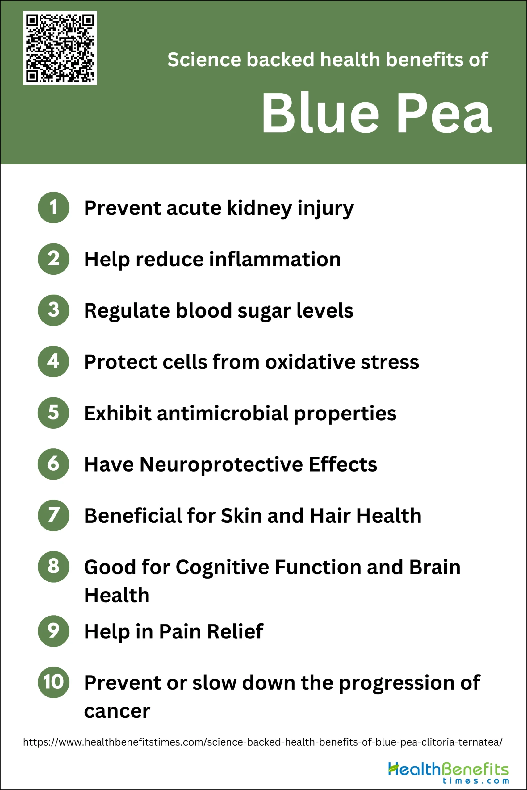 - Blue Pea boosts brain function, skin health, prevents AKI, reduces inflammation, regulates blood sugar.