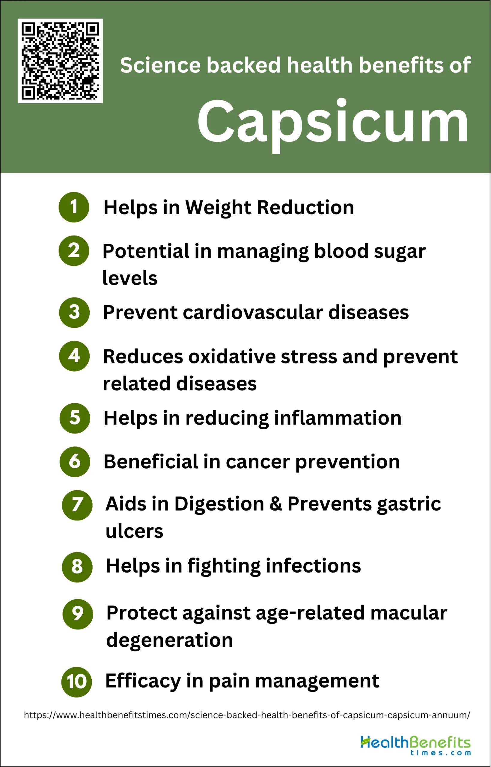 - Capsicum annuum is a nutrient-rich vegetable, supports weight reduction, blood sugar, heart health.