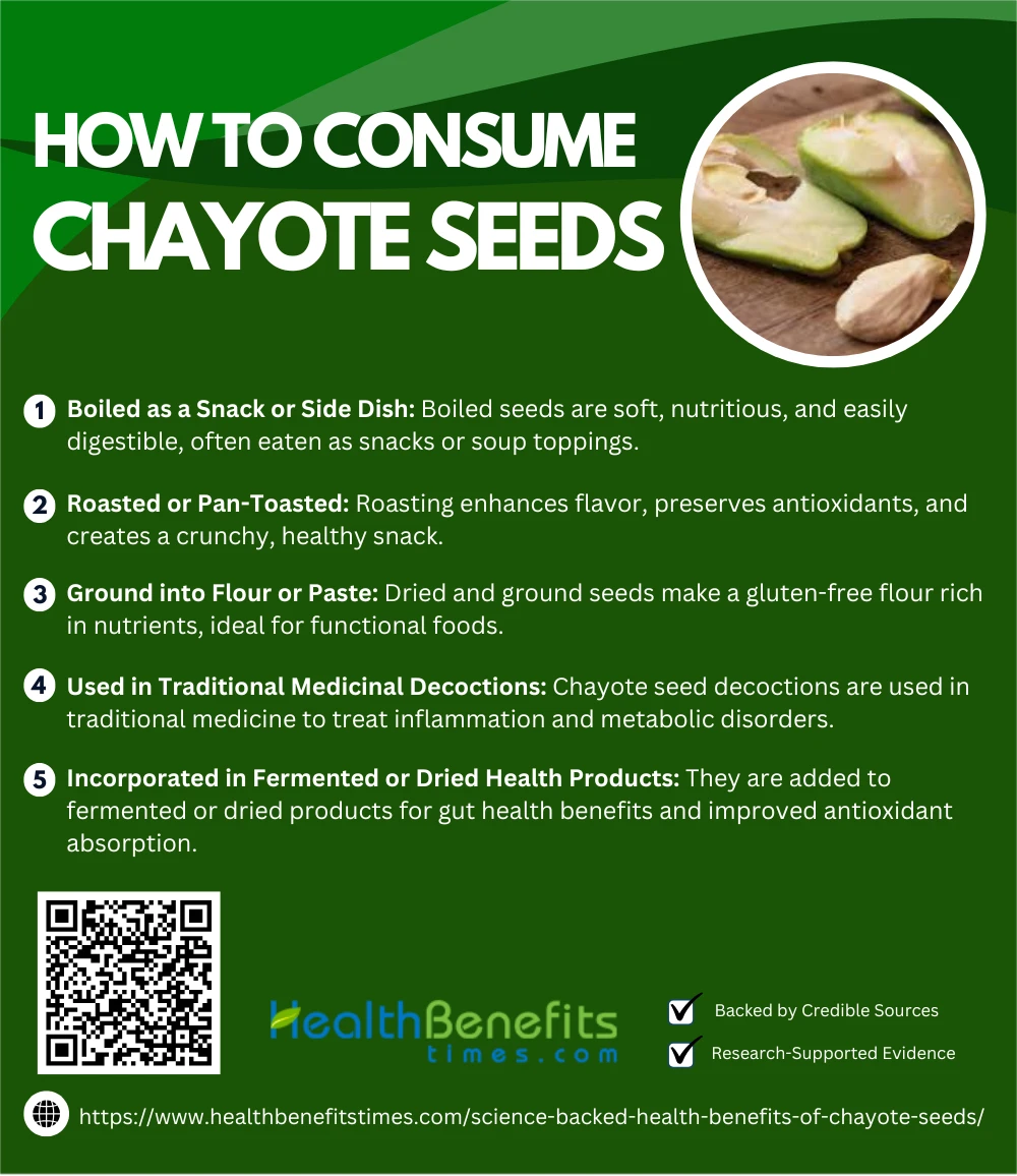 Chayote seeds can be enjoyed in various ways, such as boiled, roasted, or blended into smoothies. Proper preparation enhances their taste and unlocks their nutritional and potential health benefits.