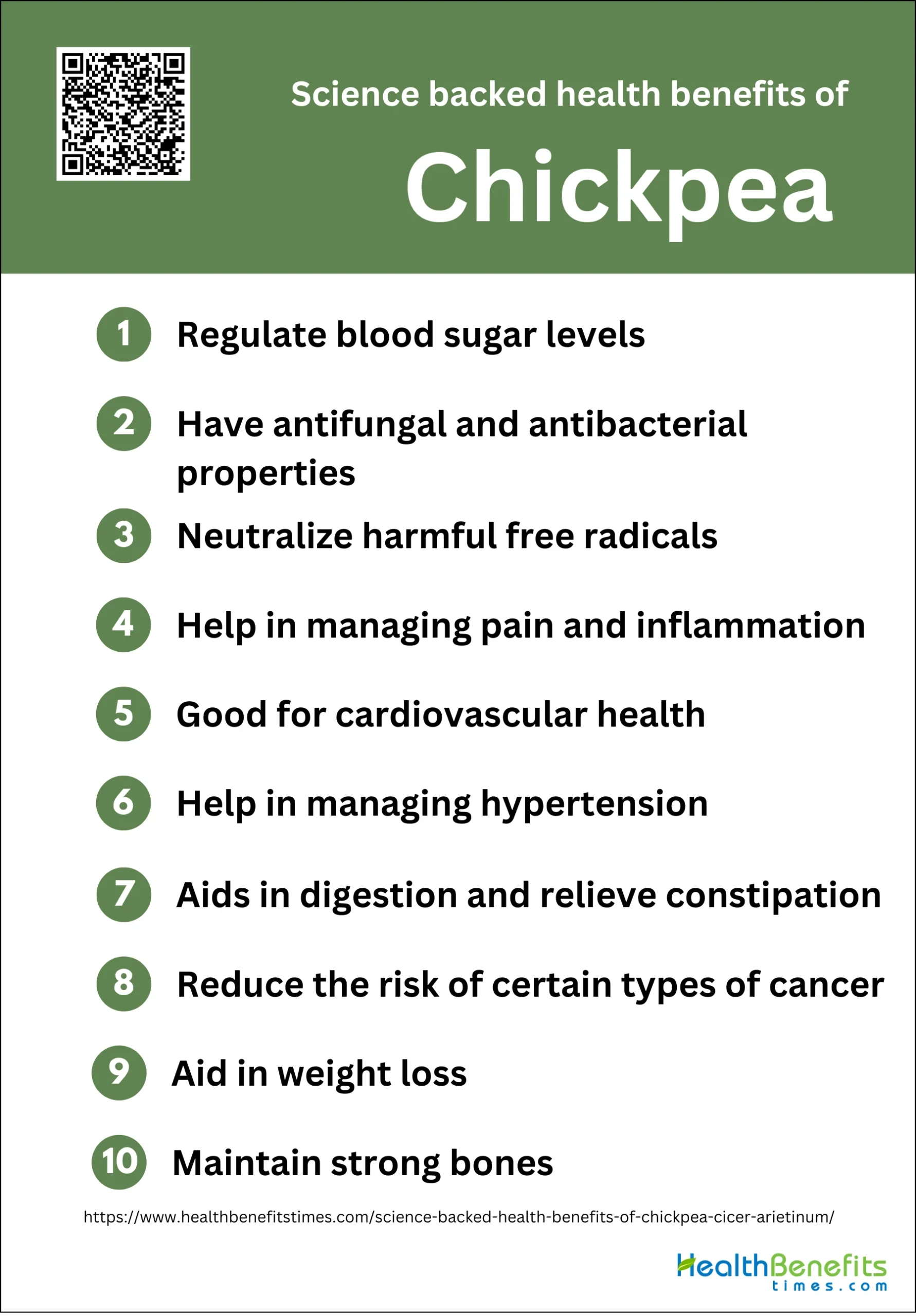 - Chickpeas have cardiovascular benefits, manage hypertension, aid digestion, relieve constipation.