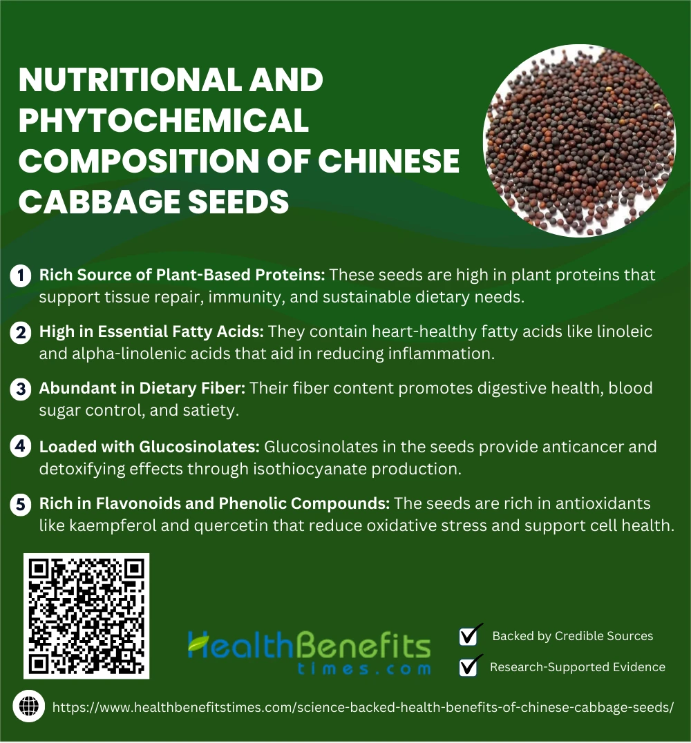 Chinese cabbage seeds are packed with essential nutrients and bioactive compounds, including proteins, healthy fats, vitamins, minerals, and antioxidants, contributing to their growing importance in health and nutritional science.