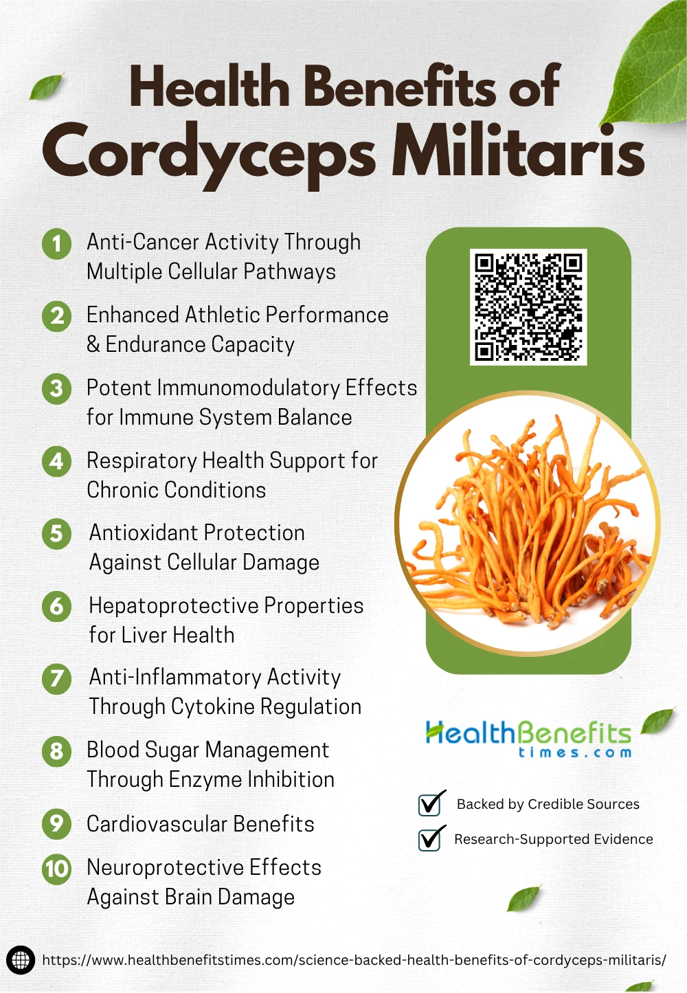 Cordyceps militaris represents a scientifically validated, multi-target therapeutic agent with extensive health benefits supported by robust research evidence. From its impressive anti-cancer and immunomodulatory properties to its cardiovascular and neuroprotective effects, this remarkable fungus offers a comprehensive approach to health optimization.