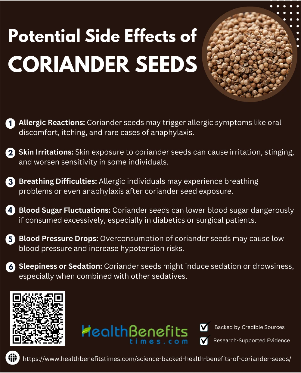 While coriander seeds offer numerous health benefits, excessive consumption may lead to side effects like allergic reactions or digestive issues. It’s important to use them in moderation and consult a healthcare provider.