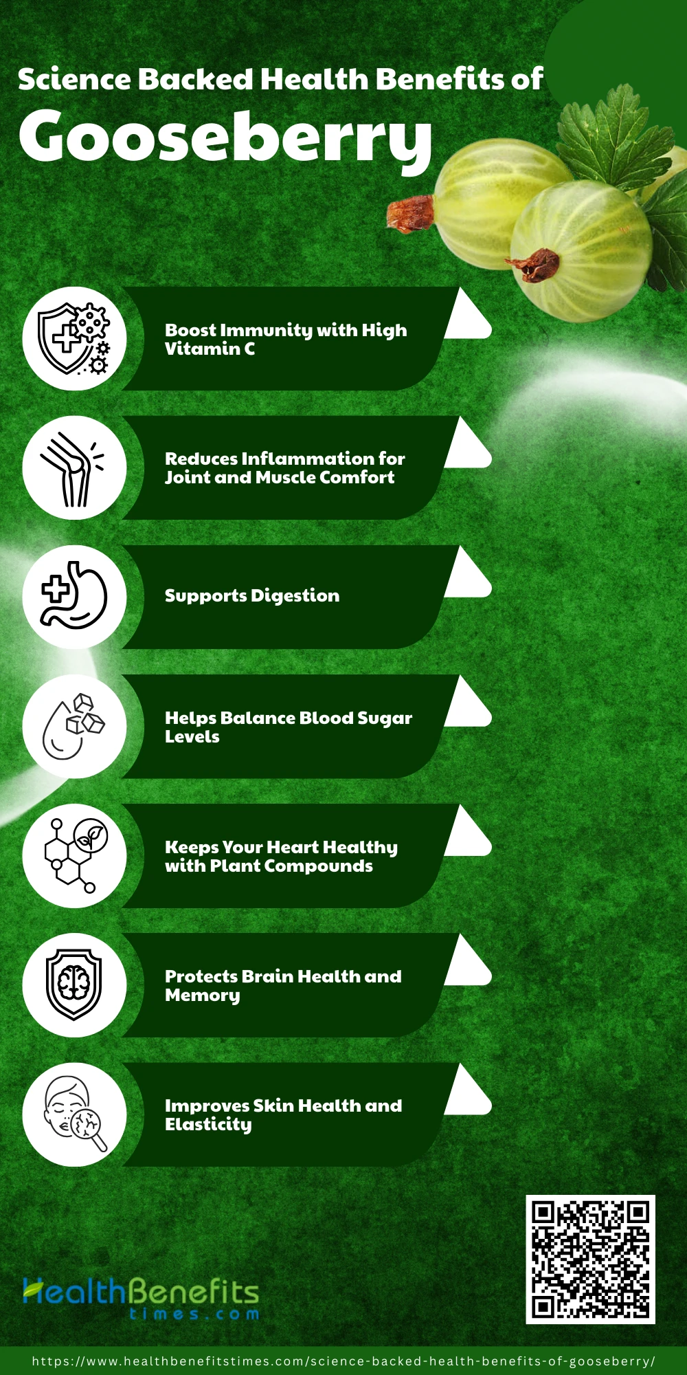 In conclusion, gooseberry (Ribes uva-crispa) is far more than just a tart, refreshing fruit it is a powerhouse of nutrients and bioactive compounds that deliver wide-ranging health benefits. Rich in vitamin C, antioxidants, and plant-based compounds, gooseberries have been shown to boost immunity, support digestion, reduce inflammation, balance blood sugar, protect heart and brain health, and improve skin vitality. While proper storage and mindful consumption are important to preserve its nutritional value and avoid risks, incorporating gooseberries into your diet whether fresh, powdered, or as extracts offers a natural and science-backed way to enhance overall wellness.
