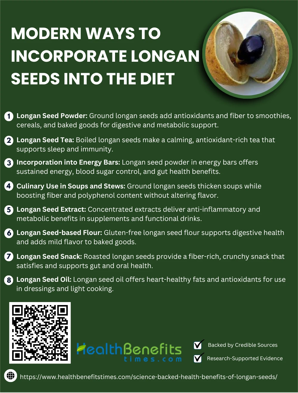 Incorporating Longan seeds into your diet is easy and beneficial. From making teas and powders to using supplements, these modern methods help unlock the health benefits of this ancient superfood.
