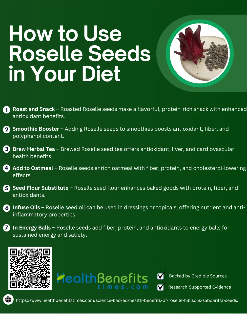 Roselle seeds can be easily incorporated into your diet through roasting, grinding into powder, or brewing as tea. Their nutty flavor and nutrient content make them a versatile health addition.