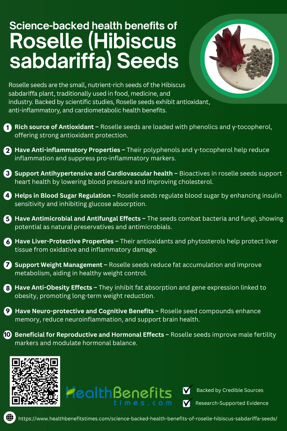 - Backed by scientific studies, Roselle seeds exhibit antioxidant, anti-inflammatory, and cardiometabolic health benefits.