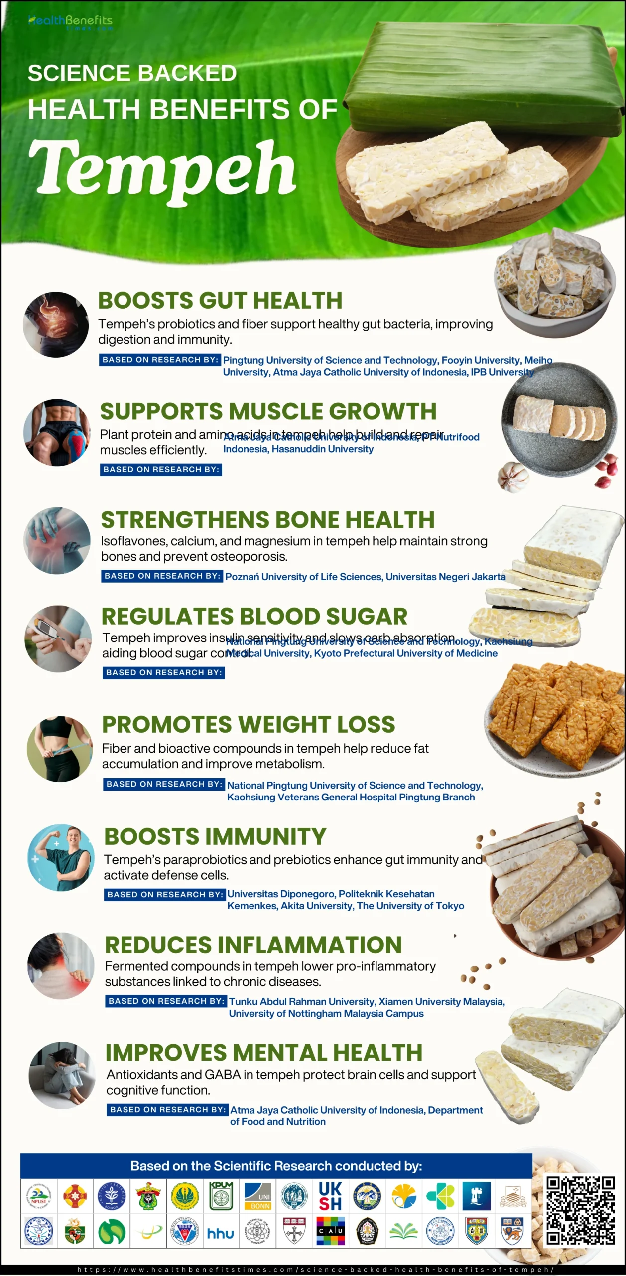 - A study from Universitas Katolik Indonesia Atma Jaya and Institut Pertanian Bogor found that eating 100g of tempeh every day increased fecal IgA levels and the number of Akkermansia muciniphila This shows that tempeh helps improve immune function and balance the gut microbiota. 19