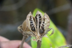 There are about 5-7 smooth, kidney shaped seeds per cell that are 4.5mm long and 3 mm wide. The seeds are rich brown to brown black in color, wrinkled, roughened and hairy. The seeds float and remain viable in seawater for months, and this has contributed to its vast diffusion.