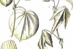 | Leaf | Sub orbicular, 10 to 15 centimeters long, green, smooth and shining on the upper surface, grayish and hairy on the under surface, with a pointed tip and heart-shaped base, and minutely toothed margins |