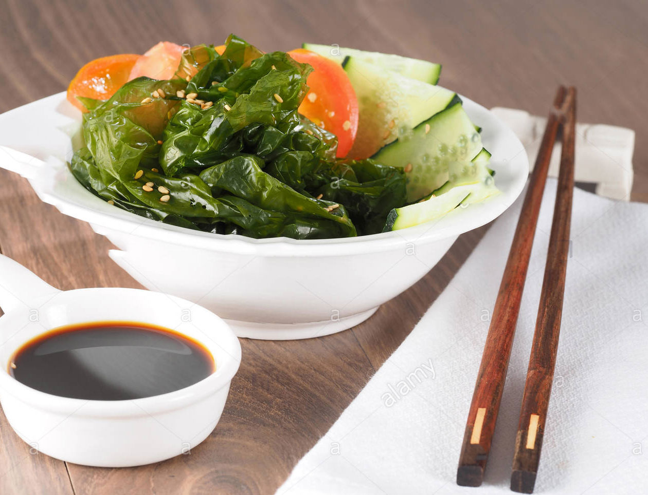 - 1/2 cup (125 mL) sea lettuce, fresh, chopped coarsely (substitute wakame)