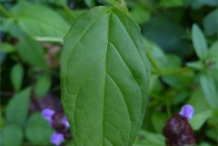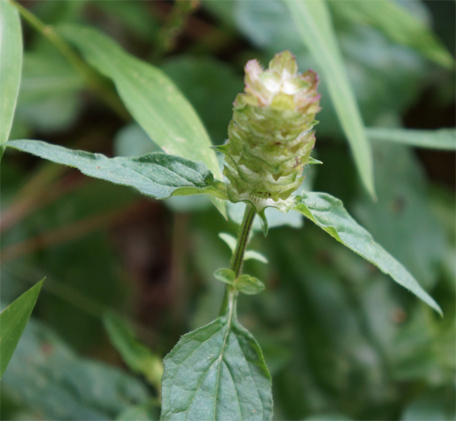 Prunella vulgaris is a fibrous rooted, herbaceous plant and grows to a height of about 2 feet. The stems are squarish with reddish stems. The leaves are lance shaped, ovate and 0.8-2.8 inches long. The flowers are blue to violet; 1- 2 inches long and 1 inch wide. The flowers are two lipped. The upper lip of the flower is purple and the lower lip is white. The middle lobe among three lobes is large and fringed upward. The flowers turn into a smooth and egg-shaped fruit. The stalks are 5 cm (2 inches) long. It has reddish, light green and hairy calyx.