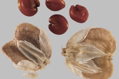 Indehiscent, a small, flattened, obcordate or obovate utricle, 2-2.5 mm long capsules |