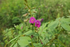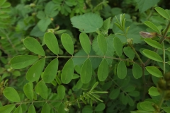The plant is self-generating and perennial herb found throughout India. It is a small shrub which grows up to 1.5 meters tall with bi-pinnate leaves. The leaves have 7-15 leaflets and the terminal leaflet is solitary. Flowers are purplish to white and about 4 to 8.5 mm long. Calyx is a persistent, campanulate, cup 1.4-2.3 mm x 1.5-3.2 mm. Pods are flat, linear, 2-4.5 cm x 3-5 mm and somewhat up-curved towards the end. Seed are transversely ellipsoid, rectangular about 2.5-5 mm x 1.8-3 mm, light to dark brown to black.