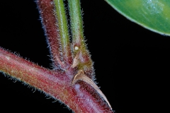 Sharpunkha is an erect and perennial legume shrub that grows 40-80 (-150) cm high. Stems are cylindrical and woody at the base having stiff coarse hairs that is reddish in color. Leaves are compound, alternate, imparipinnate and 6-12 (-14.5) cm long bearing 6-12 pairs of leaflets and one terminal leaflet at their extremity. Leaflets are 1-2.5 cm long x 0.3-1 cm wide, oboval in shape and mucronate at the end. An inflorescence is a terminal or axillary raceme about 2-20 cm long. Flowers are pedicellated, papillonaceous, solitary and borne in groups of two, three or four, 6-10 mm long and pink or purple in color. Flowers give way to green, flat and pubescent pods which are about 2.5-4.5 cm long and constricted between the seeds. Pods are light brown at maturity and twists open to set seeds. Seeds are smooth, mottled, yellowish to dark brown or black in color, ellipsoid, flattened and about 4 mm x 2.5 mm broad.