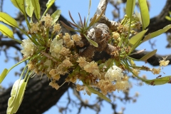 The flowers develop in the axils of scale leaves, at the extremities of dormant twigs, from buds formed 2 years previously. Inflorescence is a dense fascicle 5-7.5 cm in diameter, at the end of a flowering twig, each usually containing 30-40 flowers, though 80-100 have been recorded. Individual flowers are white or creamy-white, about 1.5 cm in diameter and subtended by scarious, brown, ovate or lanceolate bracteoles, which are abscised before flower opening. Flowering normally takes from December to early August.