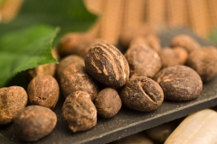 | Seed | Single seed of variable form, up to 4.5 cm long, brown, shiny, scarred all the way up; whitish almond |