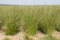 Leaves are mainly basal, numerous, and rolled. They are very slender, rough to the touch on the margins, and 2-5 inches long. They are less than half the length of the stem; the stem leaves are few and very short. The sheaths are open, auricles are absent, and the ligule is membranous. The leaves are blue-green-gray in color which helps identify this species from other similar grasses.