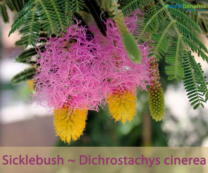 Dichrostachys cinerea, popularly known as sicklebush or Chinese lantern tree is a legume of the genus Dichrostachys in the Fabaceae / Leguminosae (Pea family). The plant is native to Africa, Indian subcontinent and North Australia and introduced to the Caribbean and parts of Southeast Asia. In Africa it occurs in all regions except the rain forest belt, from Cape Verde eastward to Somalia and southward to Namibia and northern South Africa. In Ethiopia, the species is common in the Nechisar National Park. Chinese lantern tree, Kalahari Christmas tree, Saint Domingue, Sen Domeng, acacia Saint Domingue, aroma, marabú, marabou-thorn, sickle bush, Bell mimosa, Chinese lantern, sickle pod, Princess Earrings, mazabu, Arzik, Bilatri, Bortuli, Chipangala, Evagia, Ithalala, Khairi, Kolai, Kunlai, Mkingiri, Moselesele, Muvilisya, Muwanika, N’talala, Odatare, Segum-kati, Sekelbos, Veltura, Vidattalai, Vurtuli, ami ogwu, dundu, kara, sickle bush and virtuli are some of the popular common names of the plant.
