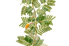 Alternate, bipinnately compound leaves similar to those of the acacia and is up to 20 cm long