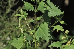- Atriplex calotheca var. acutibractea: This type can be identified by its bracts, which are small structures that look like leaves and are at the base of the flower groups. They are sharp and pointy. It can grow in different types of soil and is often found near the coast, where it can handle salty conditions.