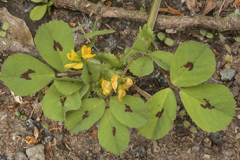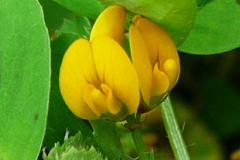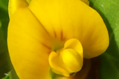 | Flower | Inflorescence of 1 to 5 pea-like flowers is in a reduced, axillary raceme on a stalk 1-3 cm long on fairly short peduncles arising from the leaf axils. The stalks are shorter than the leaves. Corollas are pea-like, yellow, about 5 mm long, the banner erect, much longer than the wings and keel |