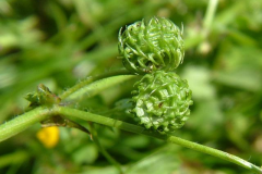 | Shapes | Barrel-shaped pod with 3 to 5 spirals, round, 4-8 mm in diameter, the outer margins narrowly keeled, spineless, or with two rows of divergent prickles up to 2.5-3.5 mm long, somewhat curved to nearly straight with short hook at tip |