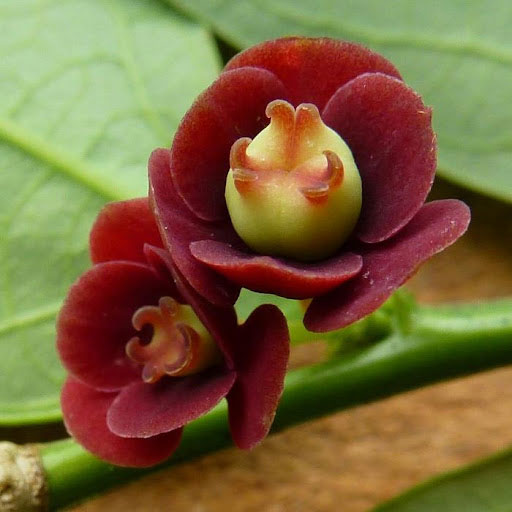 The flowers can be male, female or hermaphrodite. They are small and pinkish and appear in clusters in 5-to-12.5-cm long panicles. Flowers are formed at leafless parts of the main branches, at the upper part of the tree. Flowers are small, axillary in fascicles, with 2–6 staminate flowers in proximal axils. Pistillate flowers are cauliflorous on old branchlets, rarely in distal axils. Staminate flowers are 4-merous with free filaments and anthers that dehisce vertically. Pistillate flowers are 4-merous, borne on a stout pedicel, with deeply lobed or split disk, connate, deeply bi fi d styles, staminodes and a superior, glabrous, 6–8 lobed ovary. Flowering normally takes place in between April and May.