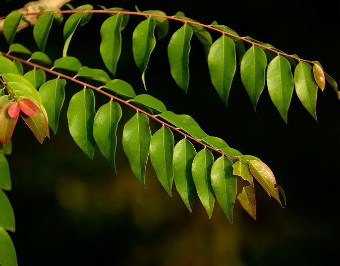 The branchlets bear compound, alternate leaves that are ovate or lanceolate in form, 14-25 inches long, with short petioles and pointed ends. Leaflets are 2-3.5 inches long and 1-1.5 inches wide, arranged alternately along the rachis, ovate or obliquely ovate, acute or somewhat acuminate, base rounded or somewhat wedge-shaped. They are green and smooth on the upper side and blue-green on the underside. In general, the Otaheite gooseberry tree very much looks like the bilimbi tree. Both the leaves and branchlets are deciduous.