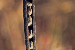 Fertile flowers are followed by a very slender, sickle-shaped pod that is 12-25 cm long and 2-6 mm wide. It is nearly round in cross-section and curved downwards. Fruits are initially green turning to brownish-green as they mature and are slightly concave between each of the seeds (i.e. the pods are slightly separate). There are 30–50 seeds within a pod. Seeds are striped olive and brown about 3 mm long, shiny in appearance, and flattened or irregularly shaped.
