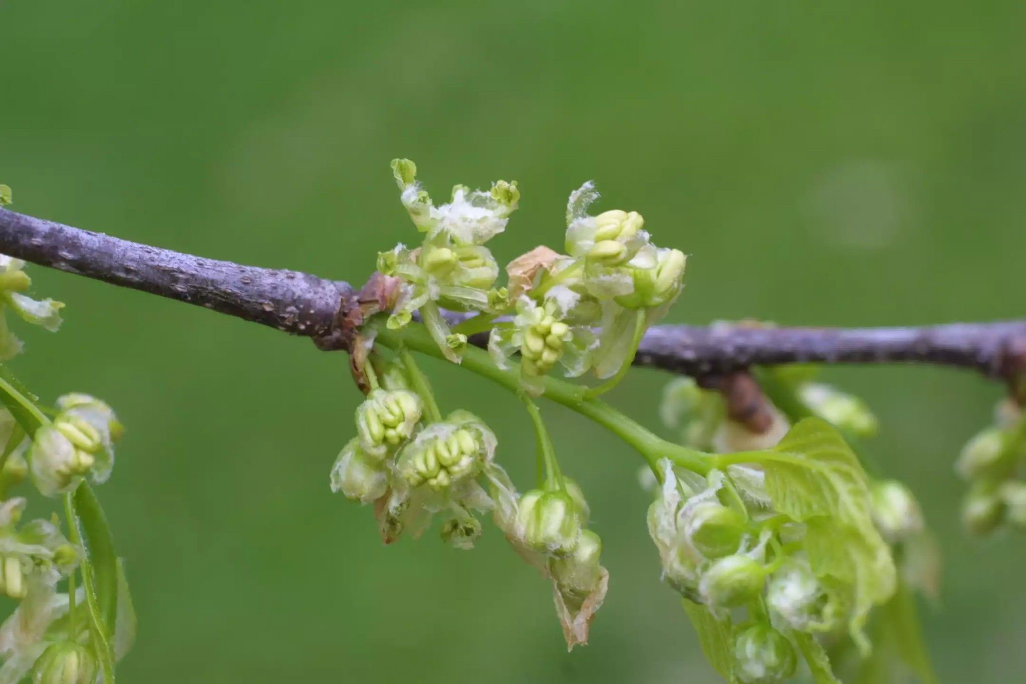 Flowers occur in small clusters, with functionally unisexual female and male flowers on the same tree, occasionally with male and females flowers combined. Male flowers occur in clusters and female flowers are solitary. Greenish flowers appear in spring (April –May).