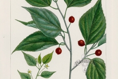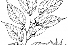 | Twigs | Twigs are slender, zigzagging, and greenish-brown to light reddish-brown. The pith is commonly chambered at the nodes and homogenous between the nodes |