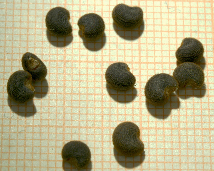 Seed capsule is inside the flower, with five or more parts joined together. The seeds may be hairy, rounded, flat disc or even a berry. Seed can be sown at the beginning of spring in a warm greenhouse if necessary and should germinate within two weeks. Seeds have a sweet, flowery, heavy fragrance similar to that of musk. When the seedlings are large enough to handle, they can be pricked out into individual pots and planted out after the last expected frosts. The seeds are sub-reniform black and musk-scented.